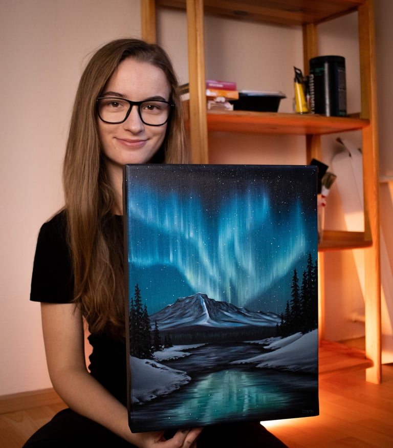 I was born in 2000 in a small village in northern Slovakia. Art has been part of my life since childhood. It started with drawing cartoon animals on paper, followed by realistic human portraits. In 2018 I did something I swore I would never do - I picked up a brush and started working with oil paints (and it was love at the first sight).